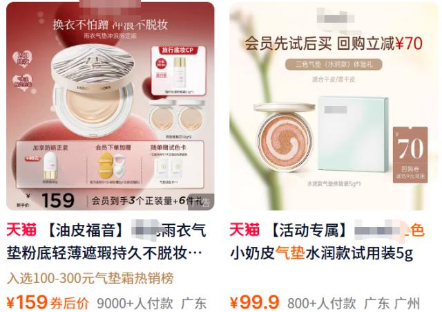 这种三色气垫在市面上不少见,由于技术过于硬核,定价不算便宜。