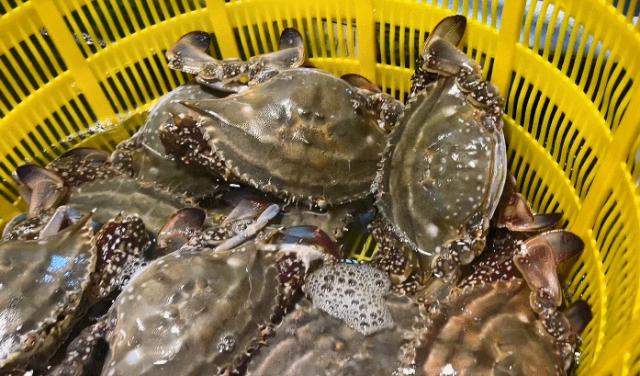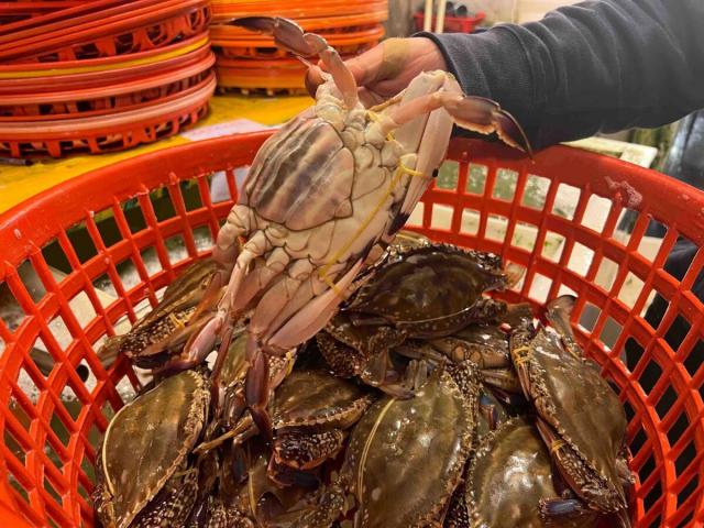 近几日,今年的红膏梭子蟹开始批量上市,价格比去年便宜,受到市民追捧。