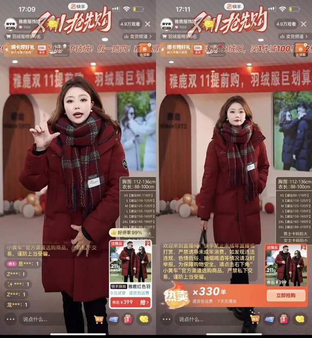 快手平台数据显示,10月18日 - 11月3日,快手女装羽绒服品类成交额同比增长63%,单场成交额百万的场次数同比增长88%,成交额破百万单品数同比大涨97%。其中,一些反应敏捷、善于把握机会的品牌,在快手开辟了新的增长路径。