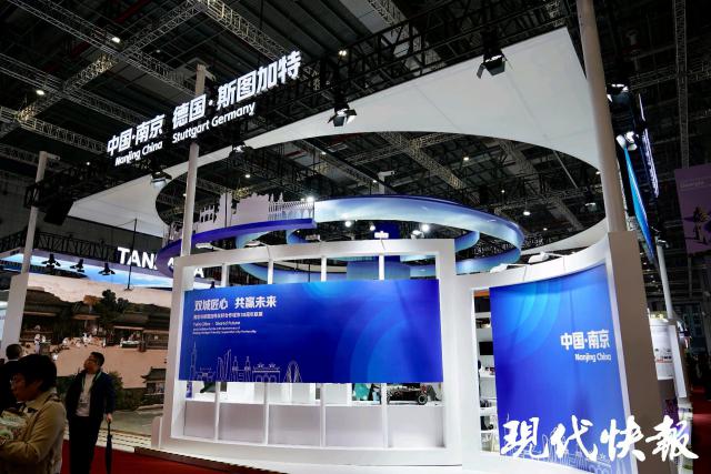 漫步在国家馆中,有一个特别的展区,主角并非某个国家,而是一对中外城市。在本届进博会国家馆首次设立的中外友好城市展区,中国南京市与德国斯图加特市作为首对参展友城,共同举办了“南京—斯图加特友好合作城市30周年联展”。