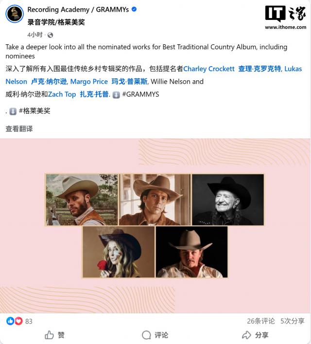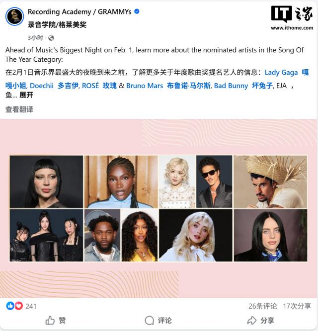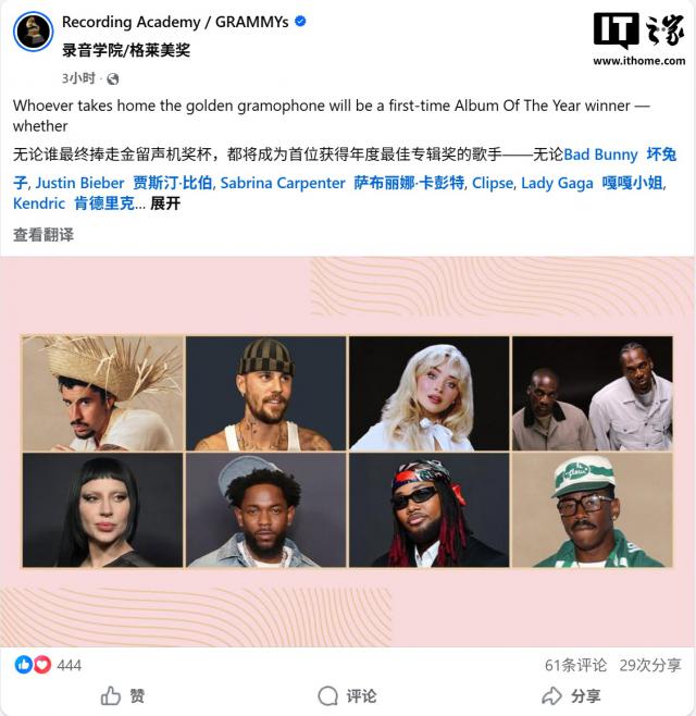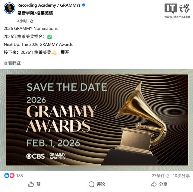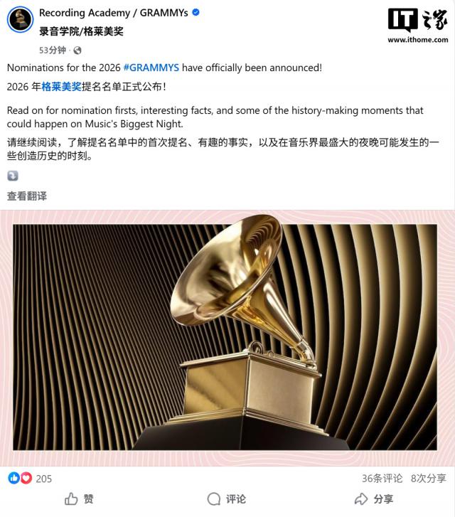 IT之家11月8日消息,美国国家录音艺术与科学学院于11月7日公布了第68届格莱美奖的完整提名名单。苹果公司的流媒体服务Apple TV凭借原创影视内容中的出色音乐表现,成功获得四项提名,充分展现了其在原创内容领域的跨界影响力。