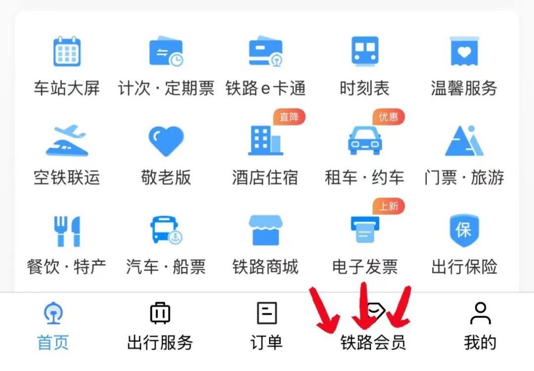 具体操作如下:打开铁路12306App,点击铁路会员。
