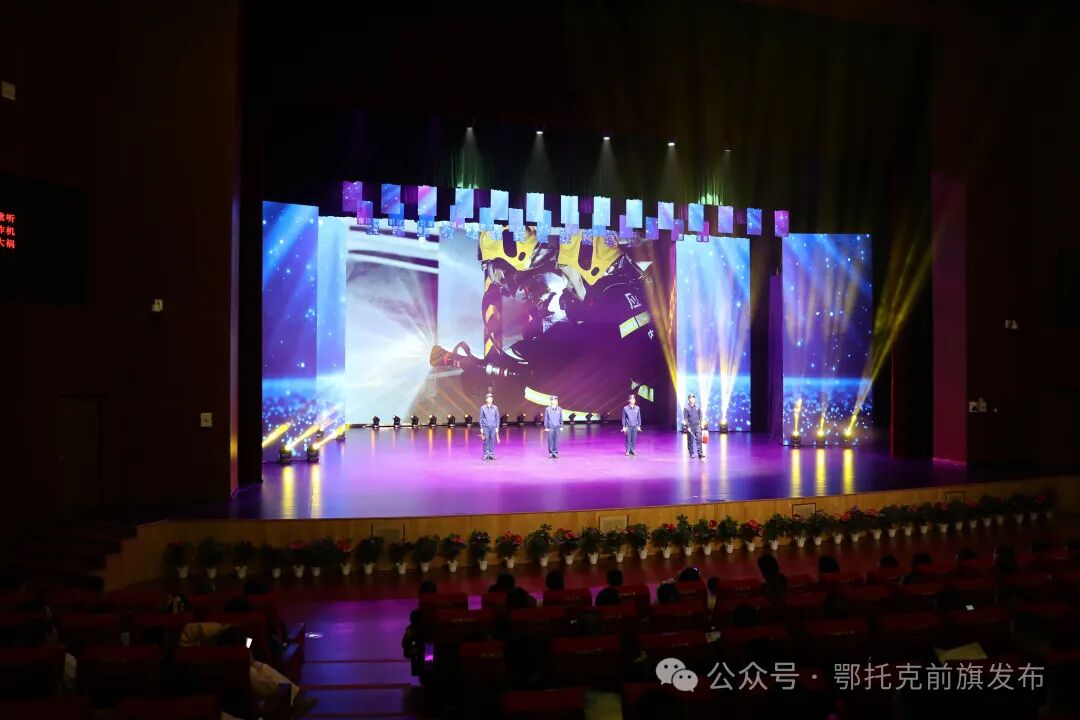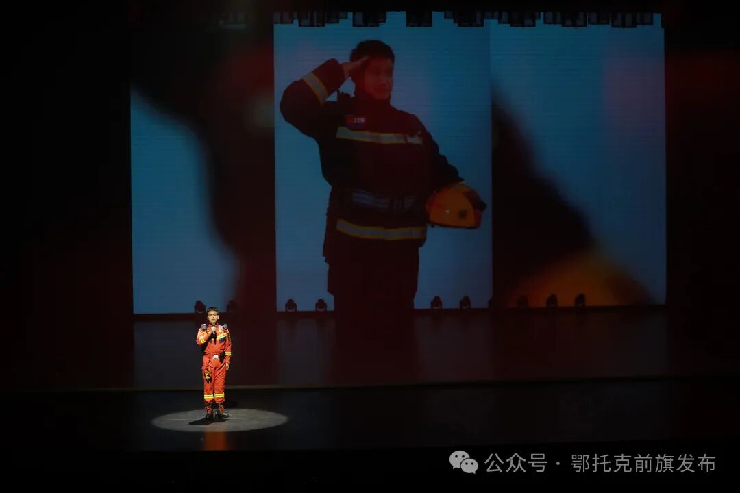在晚会现场,平日里在新闻一线忙碌的记者们放下了手中的话筒和摄像机,走上舞台成为表演者;身着“火焰蓝”制服的消防救援人员也暂时告别了战车和水枪,展示出多才多艺的一面。开场的歌伴舞《最好的舞台》充满活力,新闻工作者和消防救援人员穿着各式各样的服装,用欢快的旋律和灵动的舞蹈,拉开了晚会的序幕。诗朗诵《我们在现场》十分动人,表演者深情演绎,再现了新闻记者在牧区、项目现场采访的场景;快板《奋进鄂前旗 再铸新辉煌》节奏轻快、容易上口,用通俗易懂的语言列举了全旗的发展成果;情景模特秀《与时代同行》创意满满,模特们拿着新闻摄像机、消防水枪模型等道具,生动地展现了鄂托克前旗各族干部群众携手前进、与时代共同发展的奋斗历程。歌曲《马兰花般的消防队伍》旋律激昂,演唱者用饱含深情的歌声,唱出了消防人员扎根草原、奉献青春的无悔选择,也唱出了鄂托克前旗各族青年一心向党、守护家园的赤诚之心。一个个精心编排的节目接连上演,既有展现新闻工作者“铁肩担道义、妙手著文章”的深情表演,也有诠释消防指战员“赴汤蹈火、竭诚为民”的热血呈现,赢得了现场观众的阵阵掌声。