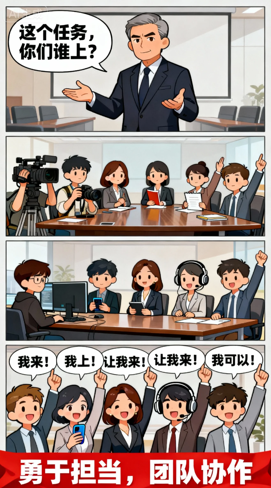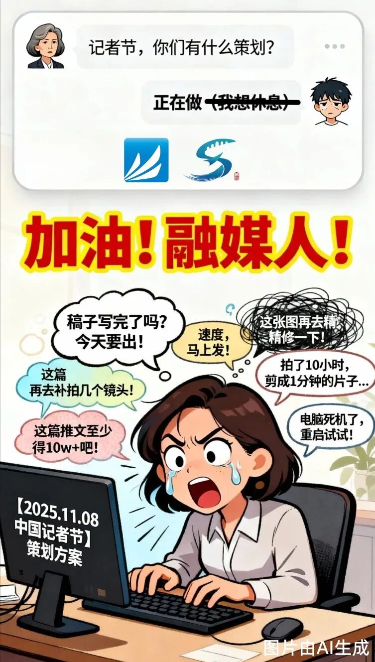 领导一声令下:“突发采访,出发!”整个部门秒变“全媒体特攻队”。记者拎包就走,说“我带着让受访者开口的真诚!”摄像肩扛设备,称“我带着能八倍速剪辑的手!”编辑紧盯屏幕,道“我带着能同时处理三个群的大脑!”我们,随时“上场”!