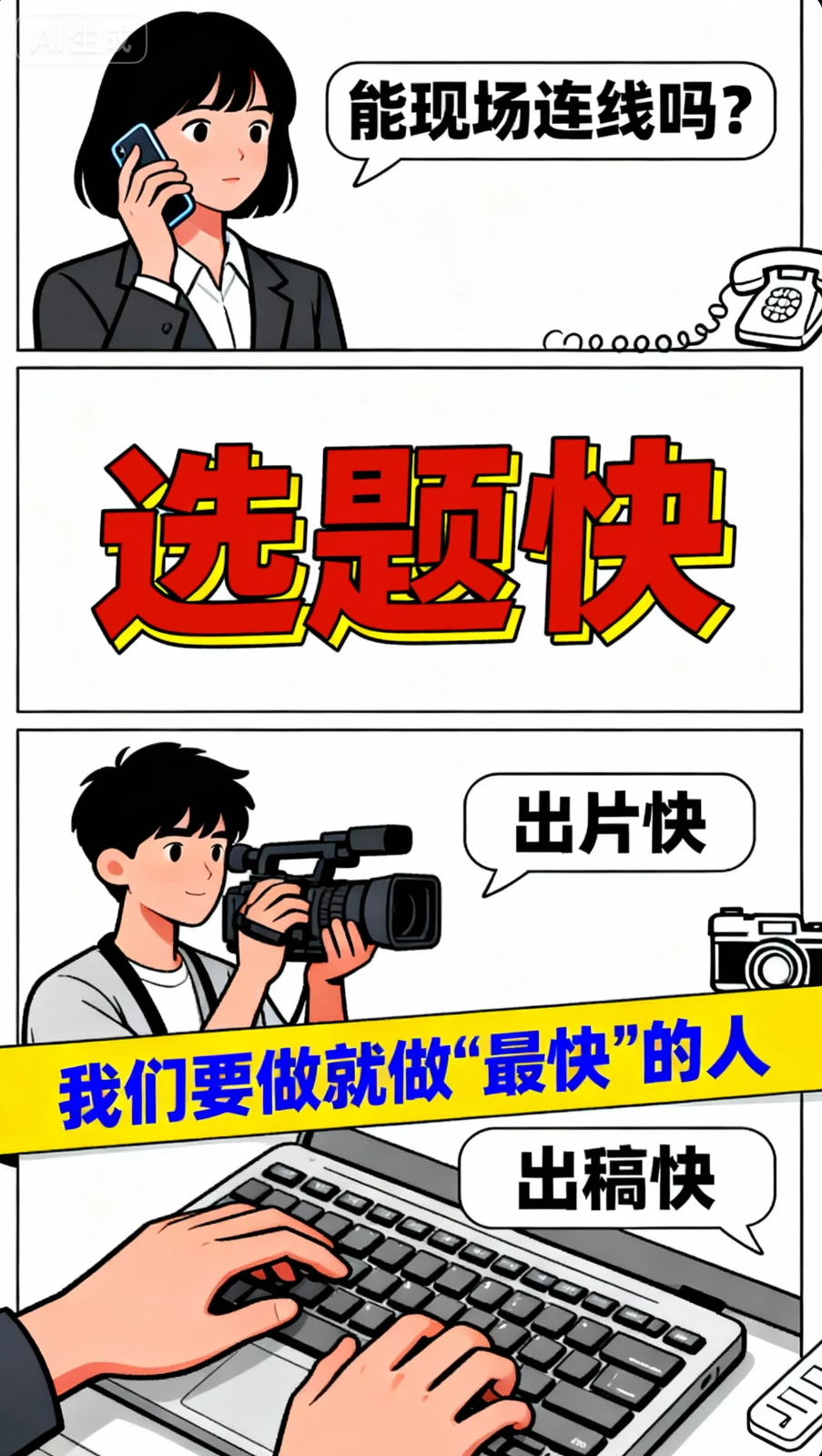 每天清晨一睁眼,时间仿佛按下快进键——选题要快、采访要快、出稿更要快!咖啡因在血管里“赛跑”,指尖在键盘上翻飞,敲击声与心跳在屏幕前共振,我们要做就做“最快”的人。