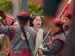 小燕子游街时,笑起来没有乡下进宫的土气,一脸温柔,不像角色设定,倒像女明星面对摄像机微笑。