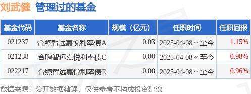 刘武健先生拥有中国国籍,毕业于北京大学数学学院并获得学士学位,还拥有光华管理学院工商管理硕士学位。他曾历任正元投资有限公司投资部副总裁,北京极至投资管理有限公司量化研究员。2021年11月,他加入合煦智远基金管理有限公司,曾任专户投资部副总监。在2025年4月8日,他开始担任合煦智远嘉悦利率债债券型证券投资基金基金经理。