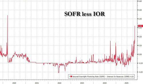 这场发债潮来临之际,美国货币市场关键流动性指标已“告急”。由于美国政府停摆,美国财政部囤积现金,市场流动性被大幅抽干,其效果堪比多次加息,任何新增的资金需求都可能放大市场的波动性与风险。