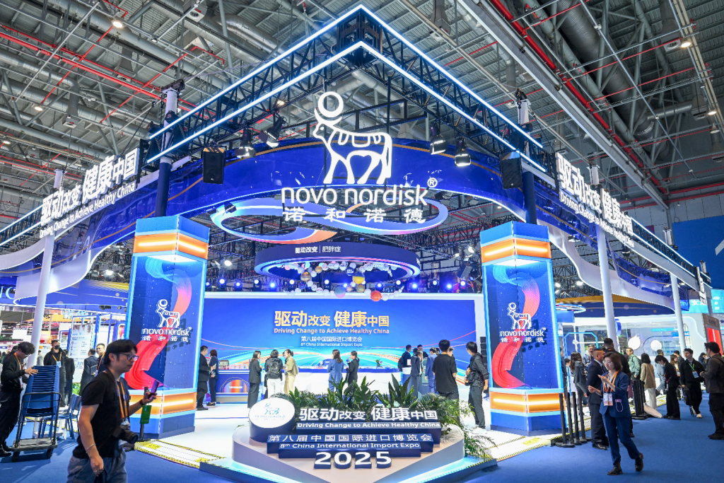 作为八年的‘全勤生’诺和诺德以800平方米超大展台亮相。 澎湃新闻记者 朱伟辉 图