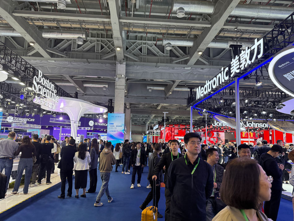 2025年11月6日,国家会展中心(上海),医疗器械及医药保健展区吸引众多观众。澎湃新闻记者 朱伟辉 图