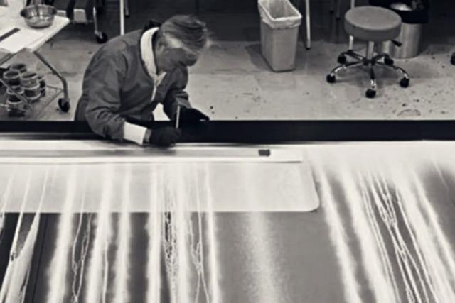 千住博并非传统意义上的商业艺术家,他擅长创作大型瀑布和悬崖绘画,热衷于将传统日本画技法与现代审美相融合。在此次合作中,千住博创作了《Waterfall on Colors ‘ Hibiki ’》,该作品以十种紫色调为主,灵感源于日本传统深紫渐变色。他将水和篆松(一种精细研磨的大理石粉)注入画布,让水引导颜料在画布表面自然流动。这种创作方式与威士忌的调配过程相呼应,都是由天然原料和时间共同塑造出最终的成品。