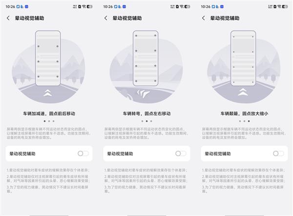屏幕采用 1.5K 分辨率、120Hz 刷新率与 460PPI 超视网膜级像素密度,最高亮度 1600nit,户外可见。支持 3840Hz 高频 PWM 调光,减少频闪。AI 舒眠模式自动调整色温,抗疲劳亮度曲线柔化亮度,缓解眼疲劳。晕车视觉辅助功能通过陀螺仪判断车体运动,显示移动指示点,减轻眩晕感。