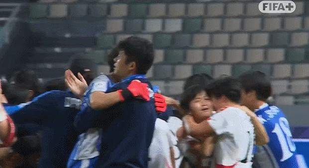 拿下冠军后,朝鲜全队疯狂庆祝,部分球员喜极而泣,激动得落下泪水。