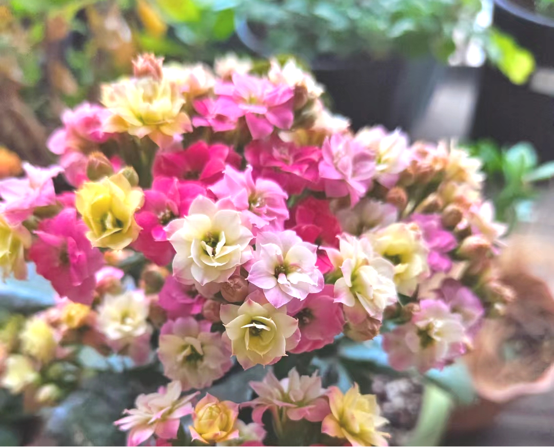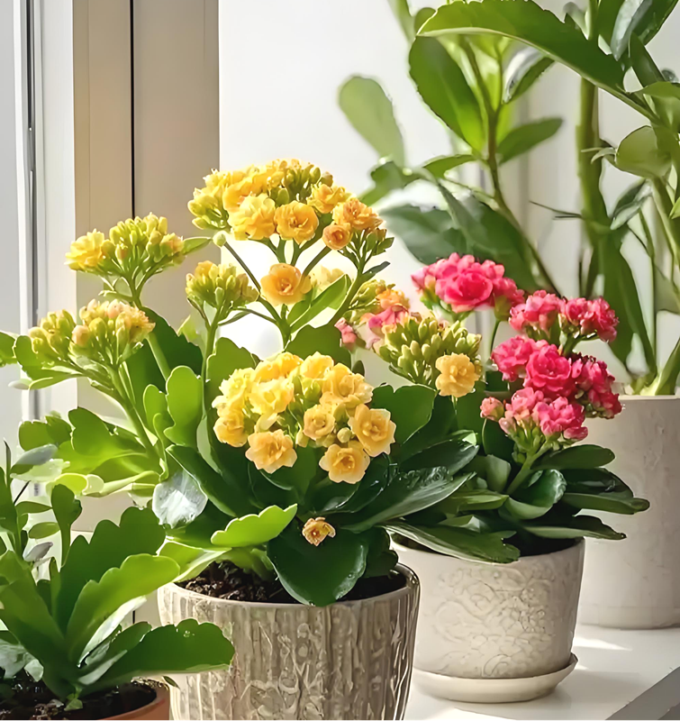 长寿花茎叶肥厚,储水能力强,适合不熟悉植物浇水规律的新手。