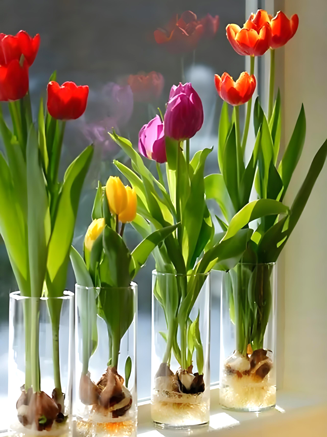 植物推荐:郁金香、水仙、风信子、葡萄风信子、雪片莲、朱顶红等都是经典选择。