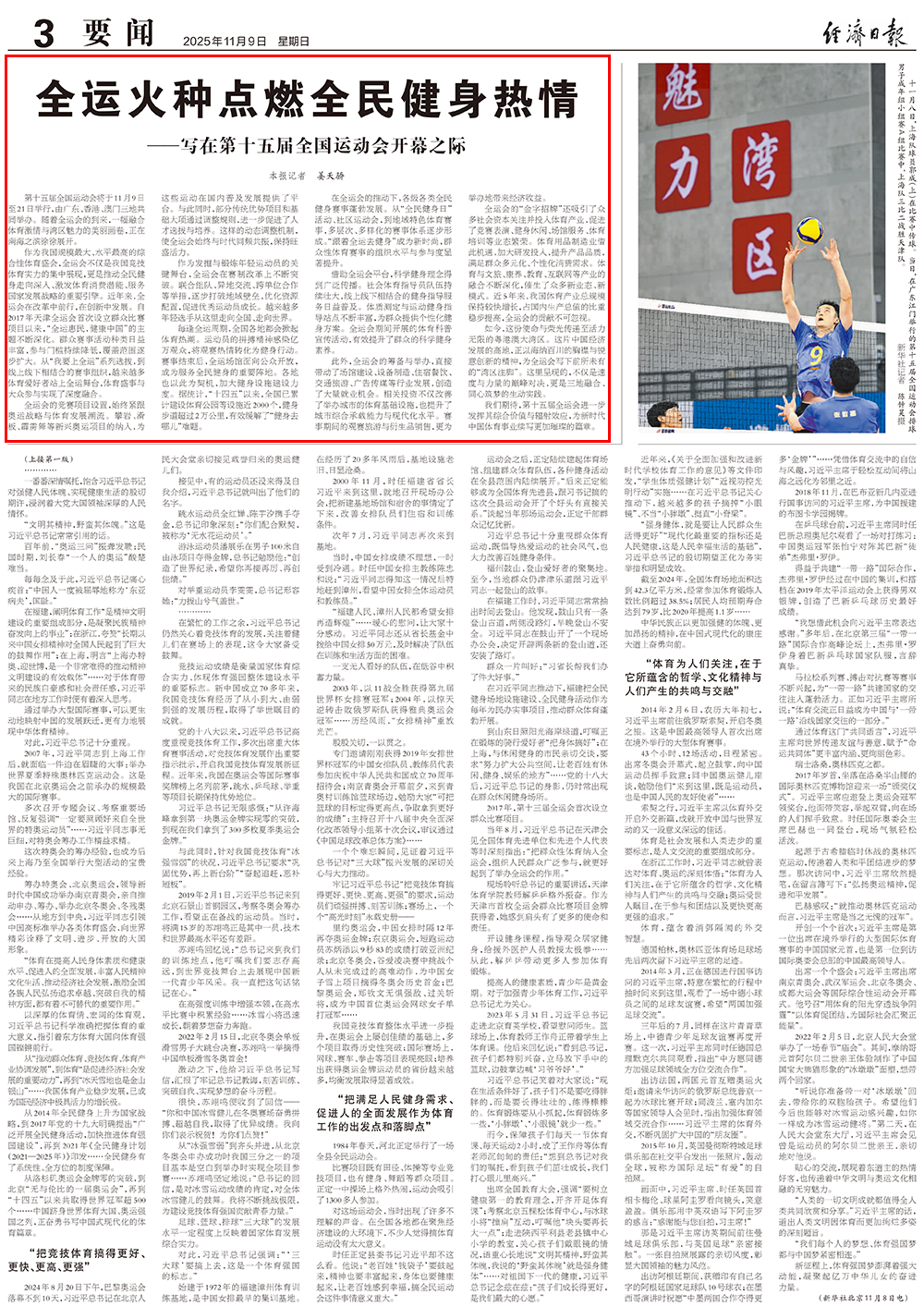 经济日报:全运火种燃旺全民健身之火