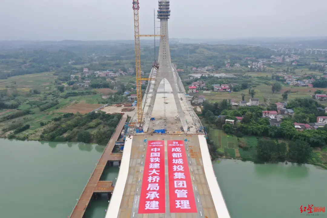 成都东西向“天府大道”建设新进展:沱江大桥顺利合龙