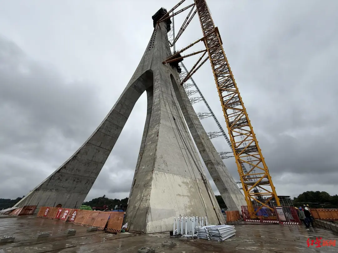 此次合龙的成都东西城市轴线沱江大桥为空间异型独塔双索面非对称混合梁斜拉桥,全长1010米。其中,主桥混凝土主梁长度达455米,最宽处为79米;钢箱梁全长250.49米,共划分为22个节段,最宽处达76.59米。
