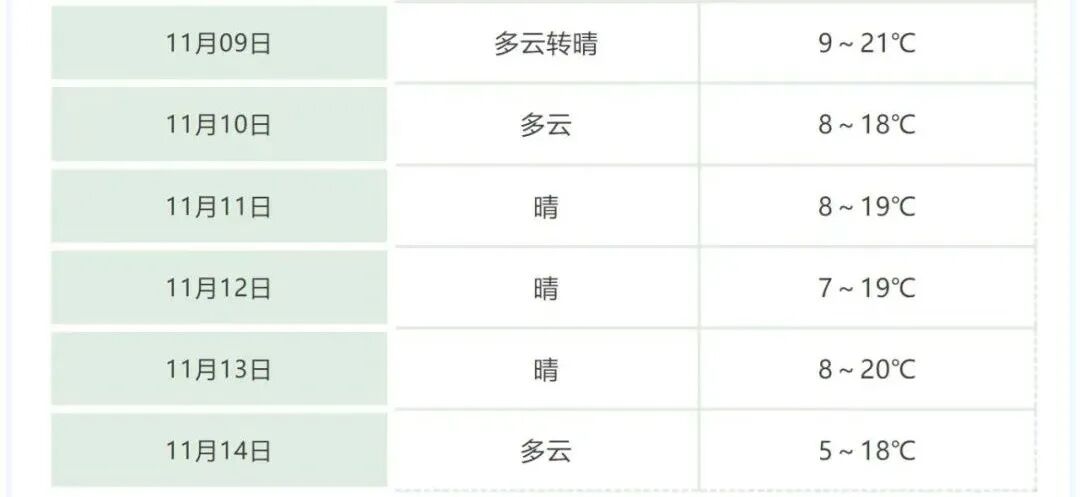 气温方面,受弱冷空气影响,全省最高气温下降至16~19℃。11 - 14日我省气温逐渐回升。
