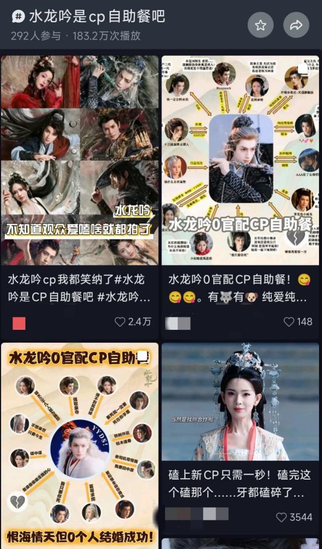 《天地剑心》把 1000 年前的人物王权无暮改为男二,他是男主幼时封闭世界里唯一的朋友,两人的成长、与父辈的矛盾几乎是镜像的,目的感很强;《暗河传》中苏昌河称苏暮雨为“我的傀大人”,为让苏暮雨通过试炼不惜以命自戕,“兰因絮果”版 CP 线很成熟;《水龙吟》中唐俪辞与男配的 CP 组合更多,堪称“全员适配的 CP 自助餐”,与沈郎魂强者相惜,与池云是冰山大佬和忠犬小弟的搭配,总之万人迷大男主的 CP 不拘性别。