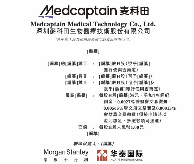 瑞财经 严明会 近期,深圳麦科田生物医疗技术股份有限公司(以下简称“麦科田”)向港交所递交上市申请,由摩根士丹利、华泰国际担任联席保荐人。