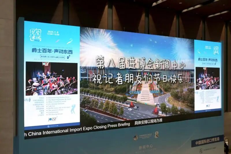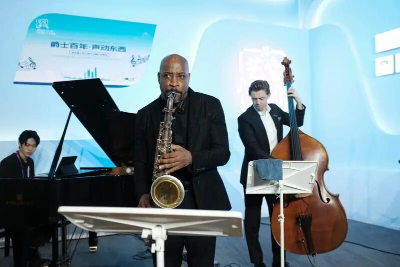 11月8日中国记者节当日,林肯爵士乐上海中心于第八届进博会新闻中心艺术空间带来了一场精彩演出。作为美国林肯中心全球唯一分中心,该中心连续第二年获邀参展,以“爵士百年”为主题,开展了一场融合东西方音乐精髓的跨文化对话。