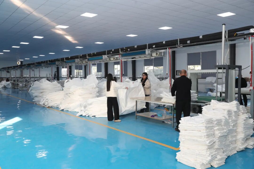 徐州恒君纺织有限公司总经理于洪党告诉记者:‘从签约到投产仅用一个月,目前运行的是第一期项目。第二期项目正在推进,全部建成后年产值预计达3亿元。’