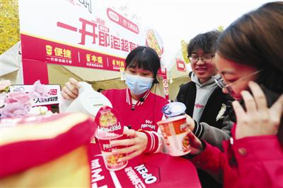 “以前泡方便面,得一个个撕调料包,还容易弄手上,这个免撕料包太省心了。”正在早点节现场体验新品的市民李女士告诉记者,她是上班族,平时加班或赶早班常吃泡面,“3分钟就能泡好,不用额外处理调料,拿在手里也不烫,通勤路上吃完全没问题。”