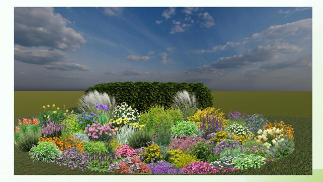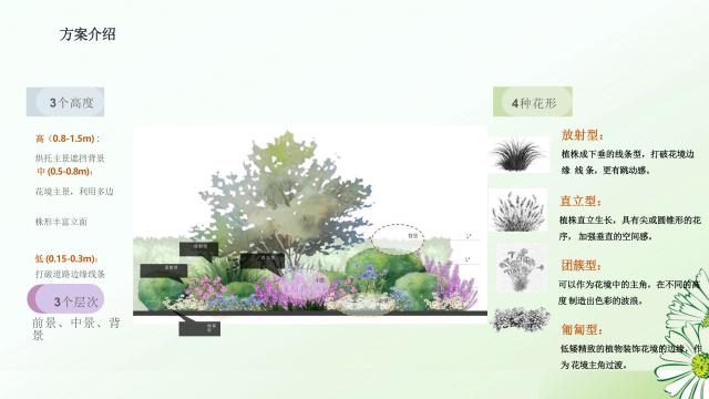 在植物配置方面,作品兼顾了季相特色和景观层次。采用了矮生凌霄、芳香万寿菊、松果菊、金鸡菊、金光菊、小精灵山菅兰、绿叶山桃草、大炫蓝鼠尾草、墨西哥飞蓬、蒲棒菊、矮生翠芦莉等植物,以橙色系为主导,多层次呼应主题。