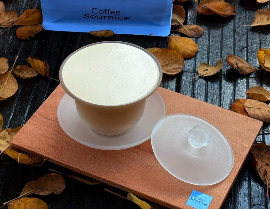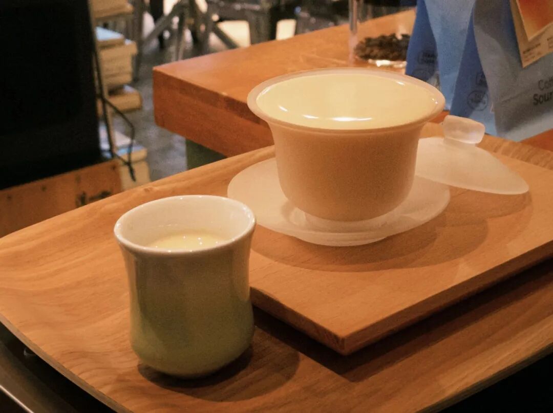 2、用中式盖碗装咖啡,自带话题与仪式感