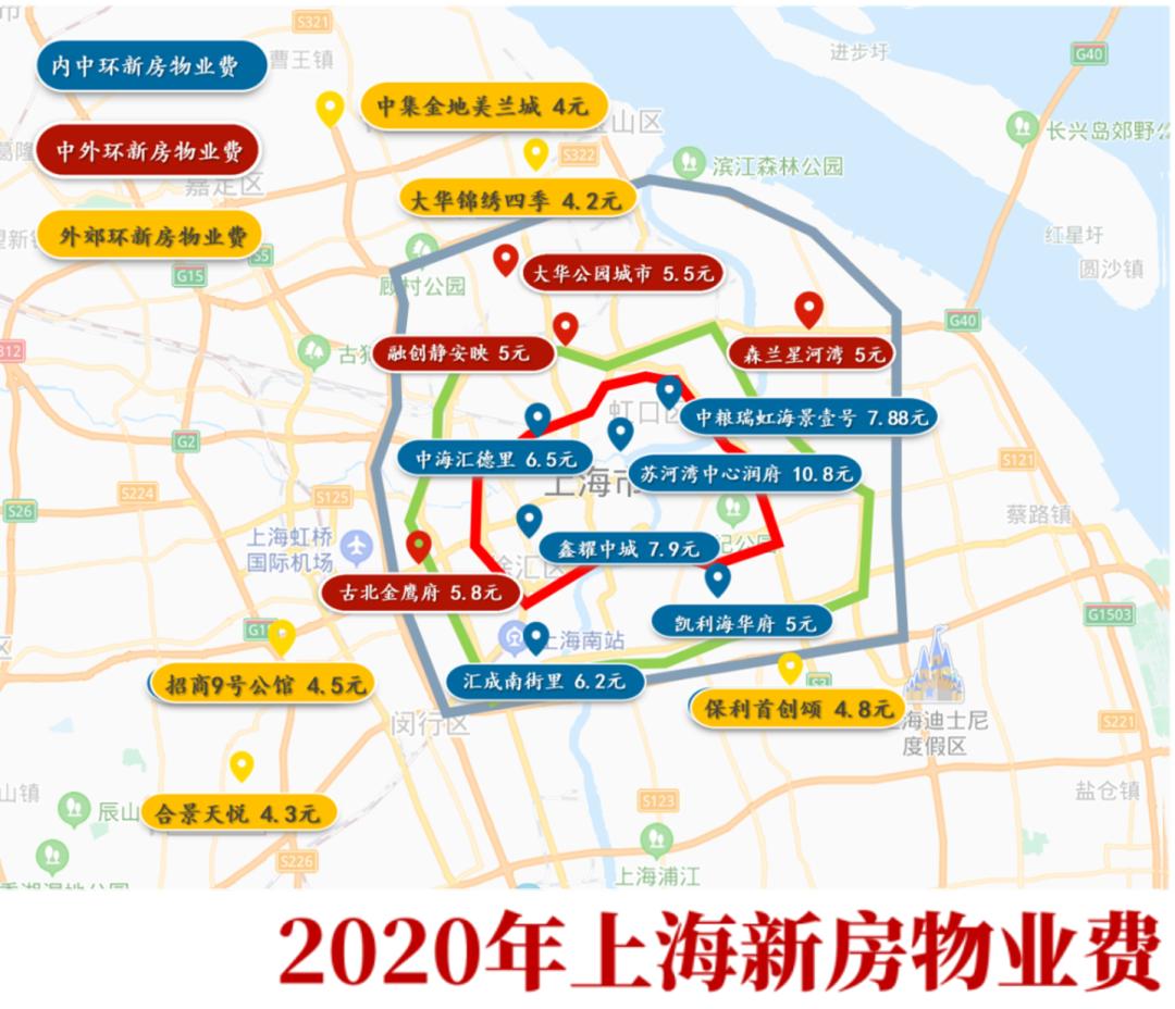 2020年,我们曾做过上海物业费的数据统计。当时,内环新房物业费约8 - 10元/平/月,中外环5 - 6元/平/月,外环4 - 5元/平/月。
