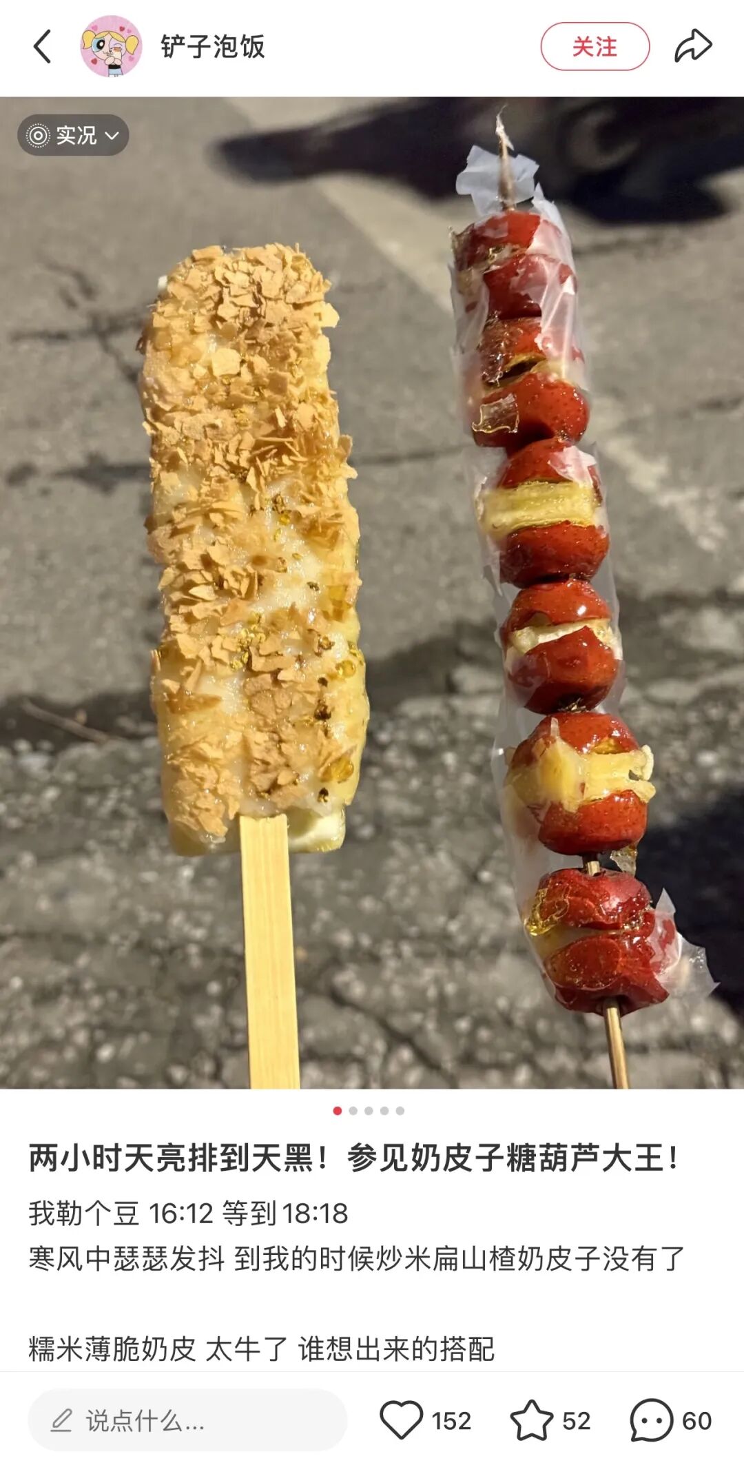 但不管争议如何,不得不承认:奶皮子糖葫芦,是真火了。