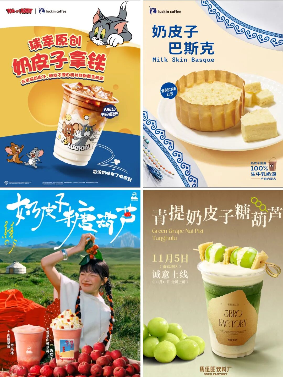 常年追热点的饮品圈率先跟进“爆改”,甚至有些“未卜先知”。从9月底开始,瑞幸、乐乐茶、马伍旺就相继推出了含有奶皮子元素的产品。