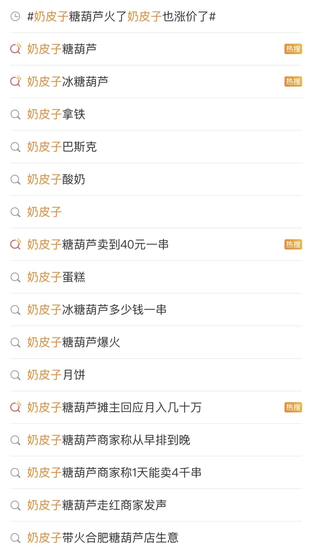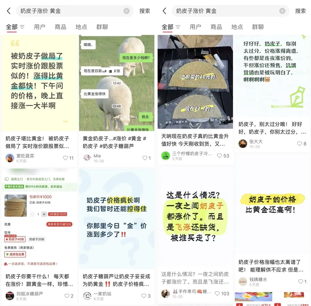 这一爆品还导致了奶皮子供不应求,一边是奶皮子糖葫芦商家发帖问:“到底发生什么事儿了?奶皮子一夜之间涨价,涨得比黄金还快!”一边是奶皮子供应商发帖问:“到底发生什么事儿了?一个礼拜火得一塌糊涂,现在一天卖过去一个月的量,完全供不上货了!”