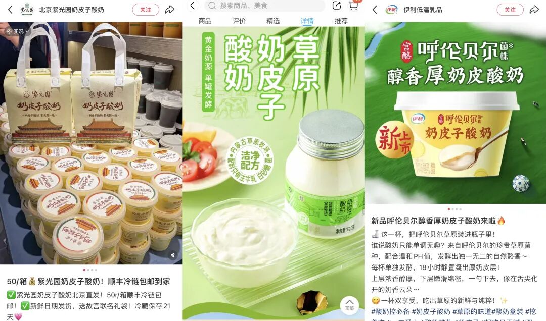 此外,2024年年初开始,以北京紫光园为起点,奶皮子酸奶呈现“井喷”态势。从三元、天润、兰格格等区域乳企到伊利、蒙牛、君乐宝等乳业巨头,以及盒马、叮咚V5等渠道品牌均推出了奶皮子酸奶,让“奶皮子”三个字在消费者端的认知进一步普及。