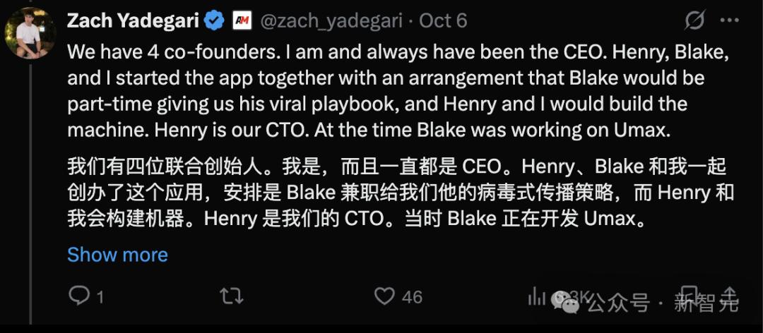 上图为Cal AI创始团队成员,右下为Jake Castillo,右上为Blake Anderson,左上为Henry Langmack,左下为Zach Yadegari。Yadegari在X平台描述了团队分工:他一直是Cal AI的CEO,Henry担任CTO,他和Henry、Blake一起打造应用;当时Blake正在开发Umax,所以兼职负责传播策略。
