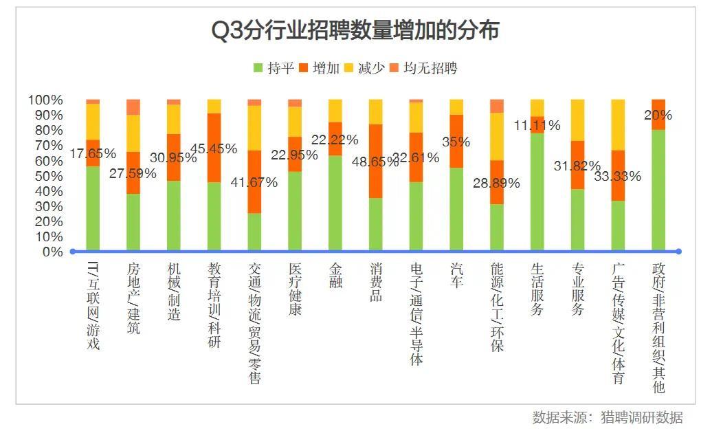 报告还指出,受行业调整和成本控制影响,互联网/游戏行业招聘增长弱,招聘数量增加的企业仅占17.65%。