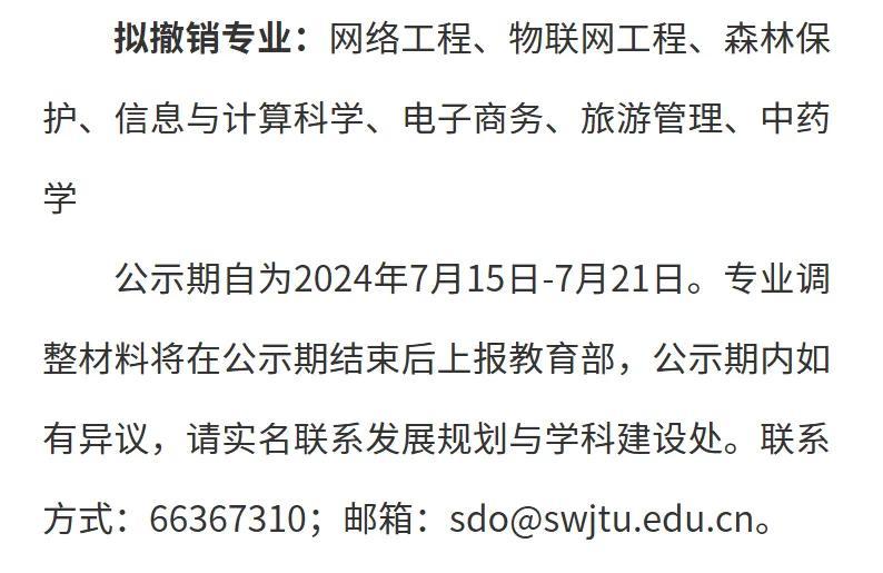 西南交通大学发布拟调整本科专业公示撤销部分专业