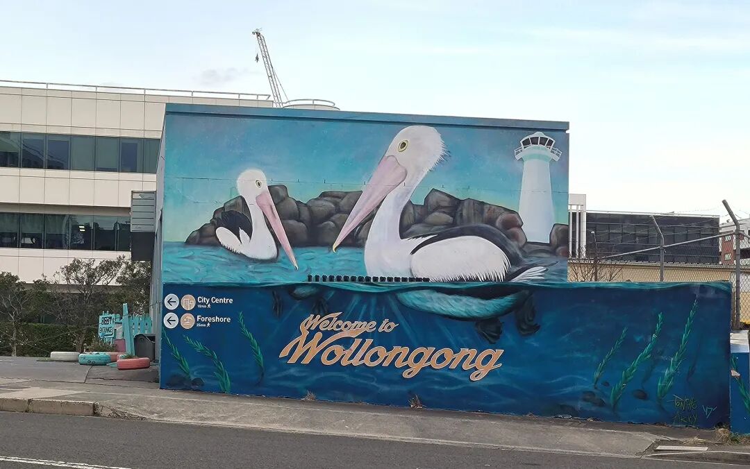 林文翔在澳大利亚游学时看到的白鹈鹕墙绘