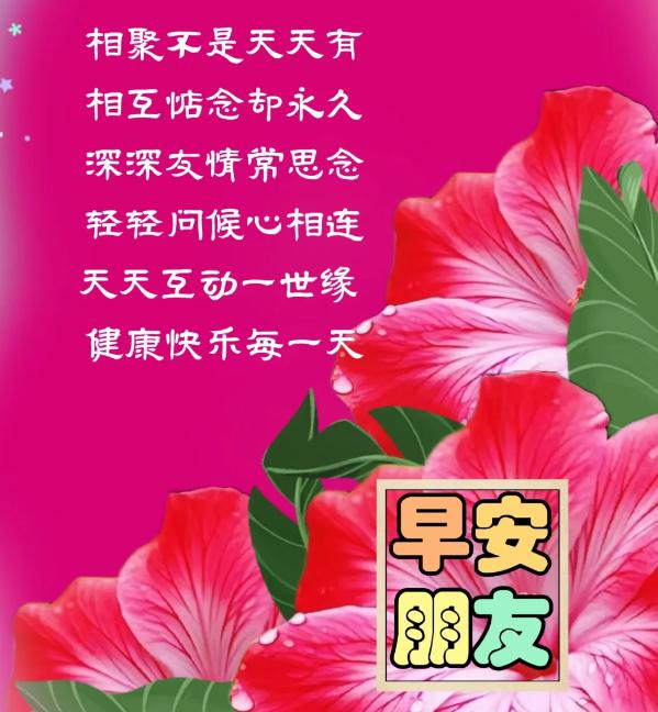 朋友之间情谊深厚,相互尊重,心心相印。这份情谊不会因时间而淡薄,即便岁月漫长也不会改变。人生相遇便是缘分,即便相隔甚远也会彼此挂念。一句温暖的问候,带来真诚的祝福。春去秋来,天地长久,我们永远是朋友。好友们早上好!早上愉快!