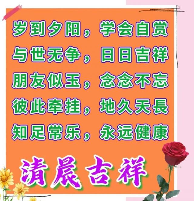 祝朋友们:每个早上顺心如意,每天开心有趣;每月紫气东来,每年春风得意;一路繁花似锦,一生健康相伴!早安吉祥!