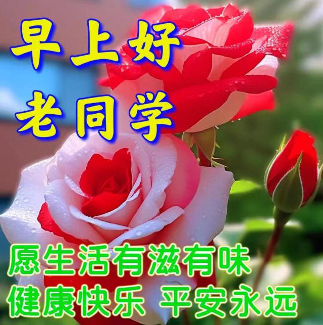 晨曦初现,彩蝶翩翩起舞,传递着我对你的思念;晨风轻拂,麻雀低声细语,倾诉着我对你的牵挂;晨光普照,温暖洒满大地,展露着我对你的笑颜;晨露滋润,甜言蜜语满溢,表达着我对你的祝愿。老同学,愿你拥有美好的一天,早安!