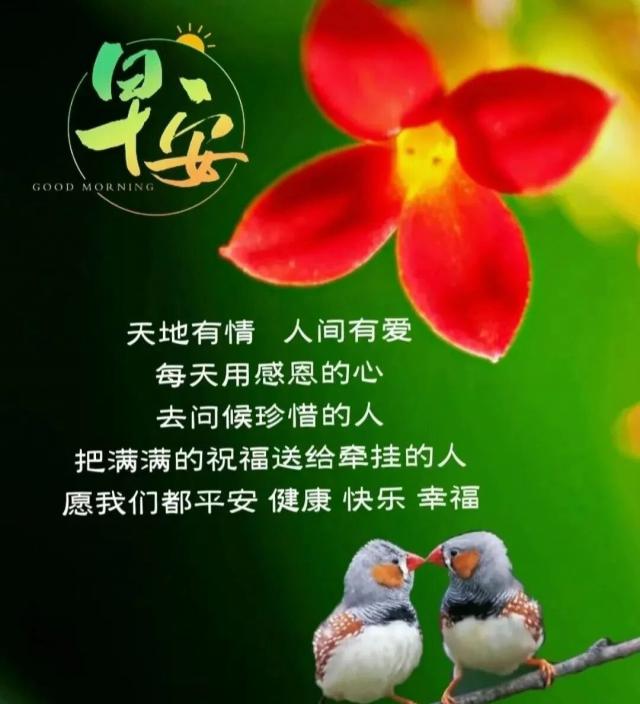 美丽的早晨,是幸福的起点;清晨的问候,带来愉快的一天。愿平安健康、开心快乐永远与我们相伴。简单的问候,饱含着深深的祝福!每个早晨都会想起您!愿您健康、快乐、幸福!早上好!