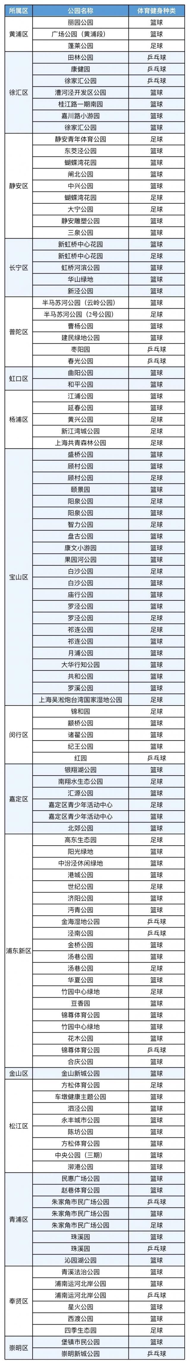 上海公园体育健身地图