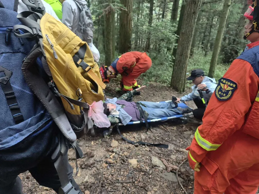 消防员到场后,成功将受伤女子转移至山下安全区域,并移交给现场医护人员送医救治。
