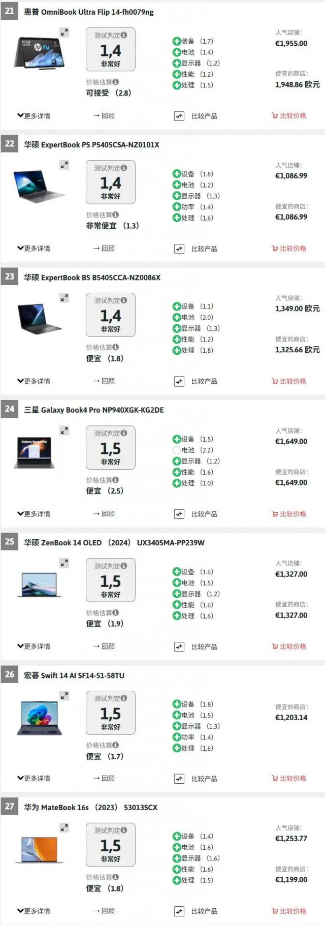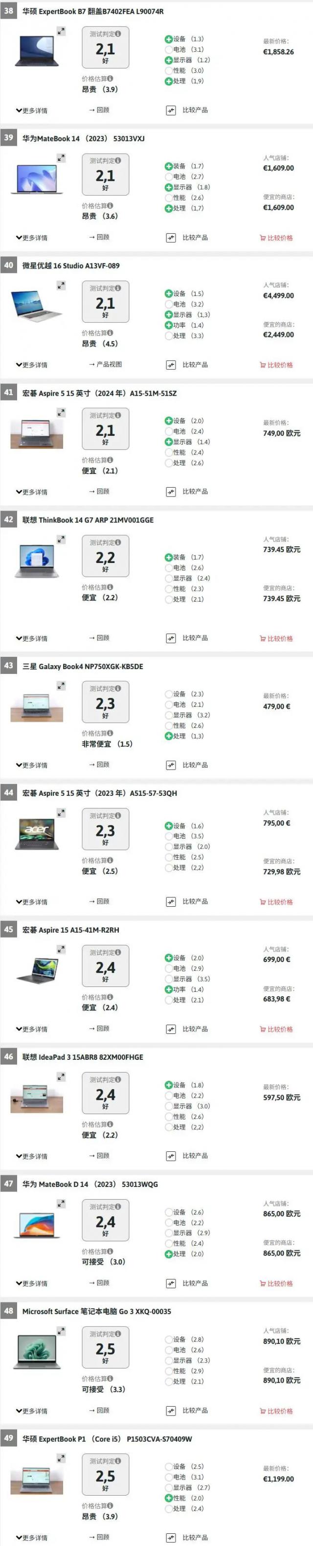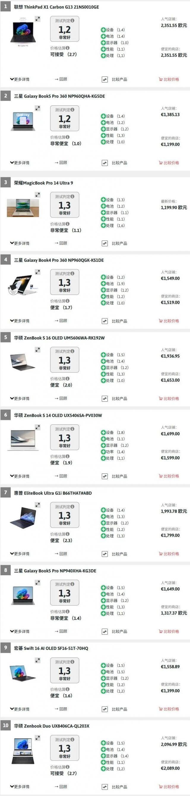 德国测评:49款优良笔记本电脑,29款来自中国,季军价格仅为冠军一半