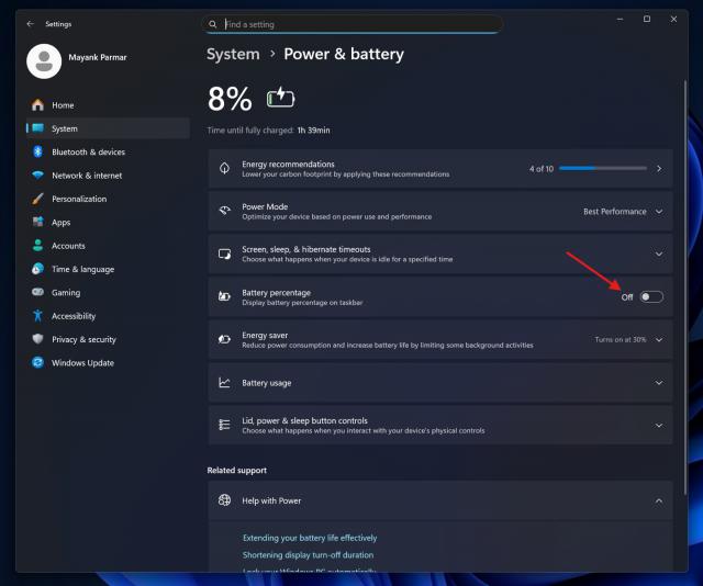 IT之家援引博文介绍,用户现在可方便地开启电量百分比显示。只需进入“系统”设置中的“电源与电池”页面,找到并打开“显示电池百分比”的新开关即可。开启后,具体的电量数字会清晰显示在任务栏的电池图标内。