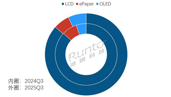 2025Q3中国智能平板主流电商市场按销量屏幕类型结构及变化