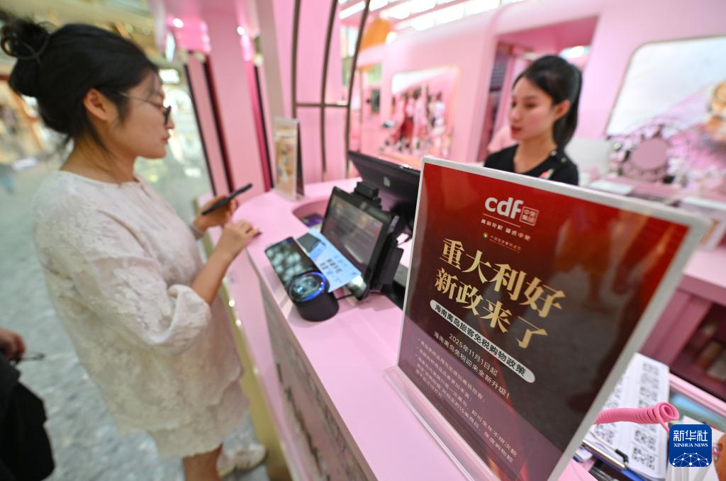 11月9日,顾客在三亚国际免税城选购国内商品,这是新增免税品类。(新华社记者郭程摄)
