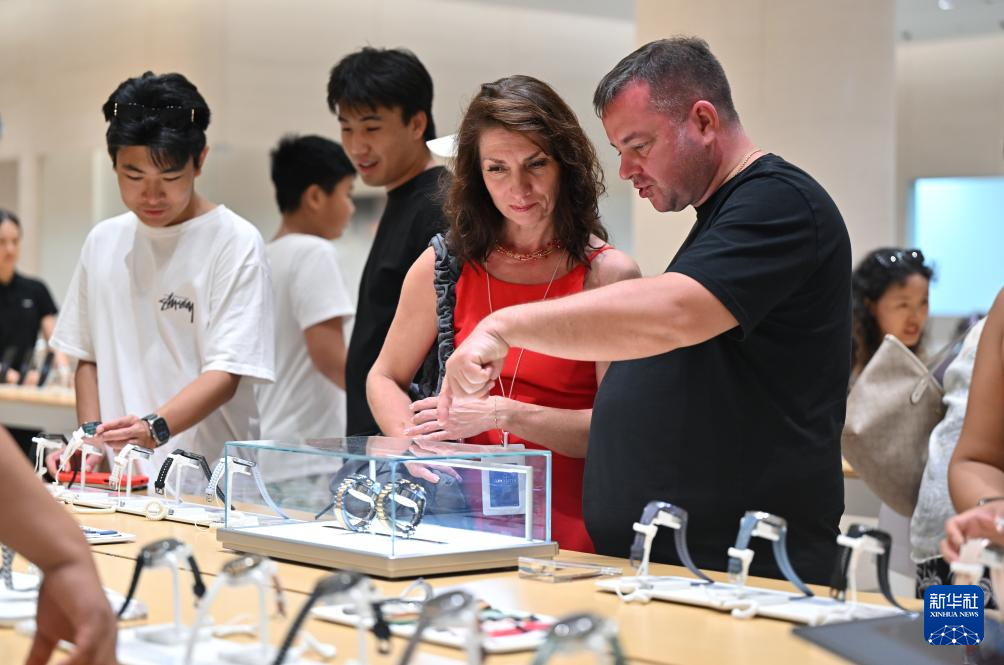 11月9日,外国顾客在三亚国际免税城选购商品,新政将适用人群扩至离境旅客。(新华社记者郭程摄)